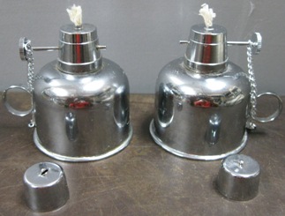 QTY. 2. SILVER PLATED ALCOHOL BURNERS NEW SURPLUS OLD WAREHOUSE STOCK. photo