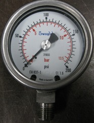 QTY. 1. SWAGELOK GAUGE, NO: EN 837-1, CI. 1.6, 0-200 PSI, 0-13.5 BAR, 316 SS, NS, ½" CONNECTION. photo
