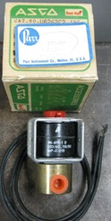 QTY. 2. RED-HAT ASCO VALVE SOLENOID, NO: 89HW, FOR PARR, CAT NO: U826202 2NC, SERIAL NO: S 53297 L8, VOLTS: 110/50 120/60, PIPE: 1/8, ORFICE: 1/8, PRESS: AIR,GAS 155, WA: 180, LT: OIL 140, 026629951, 96-619-1 D, 120/60, 110/50, MP-C-015. photo