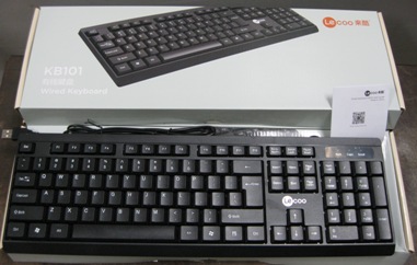 QTY. 3. LECOO WIRED KEY BOARD, KB101 WIRED KEYBOARD BLACK, BAR CODE: KB101240310023, 6 971859 343447. photo